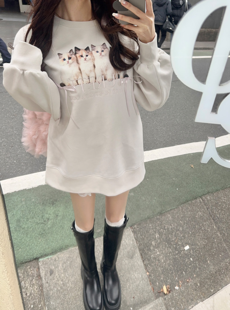 貓貓印花圖案X蝴蝶結衛衣 [pm621]