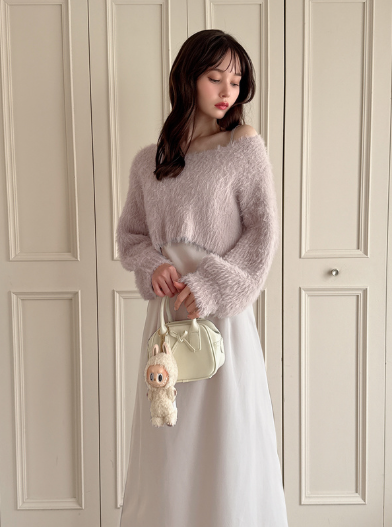 毛毛針織上衣 x 吊帶連身裙套裝 [ru1294]