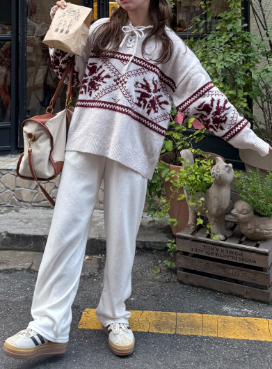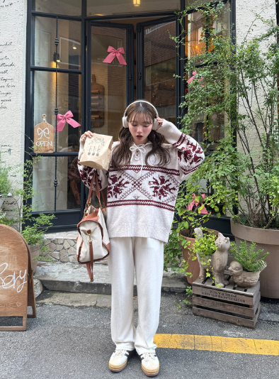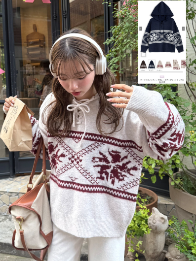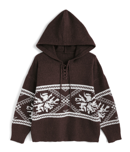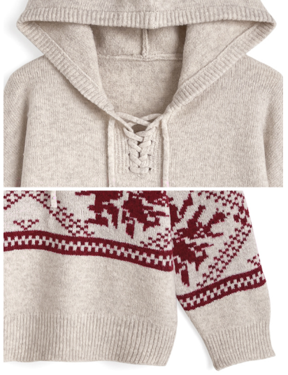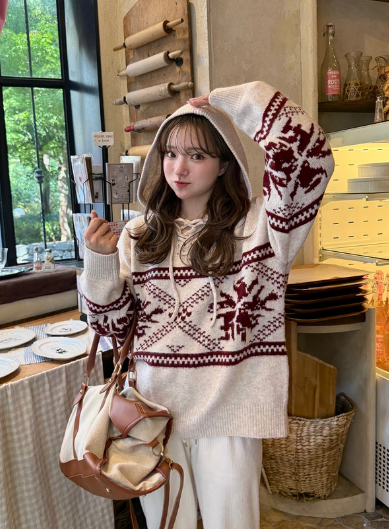 可愛感! 民族風綁帶連帽針織上衣 [gn444]
