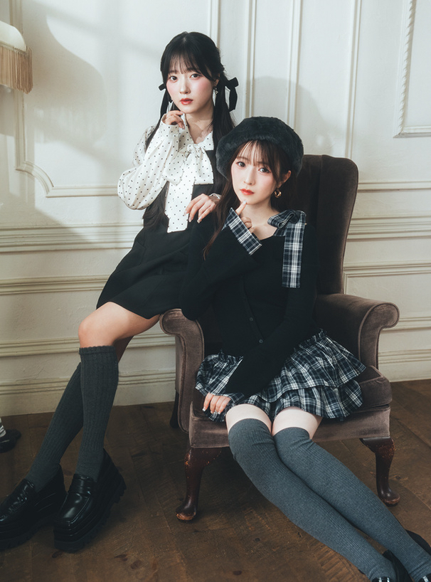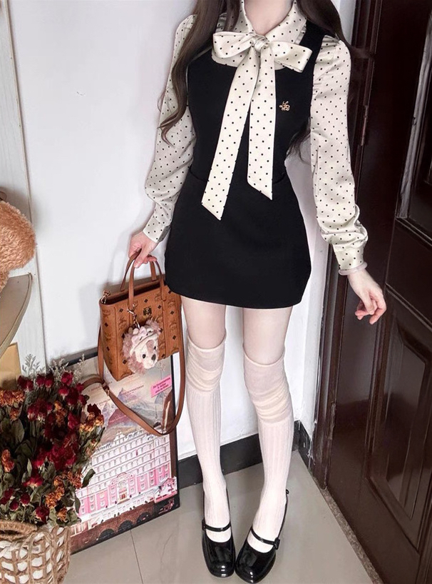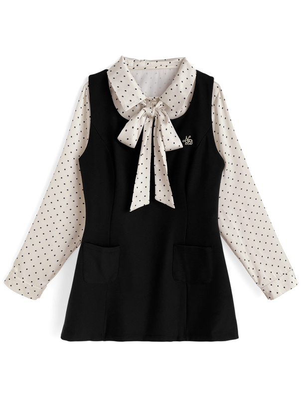 日本女團CUTIE STREET聯乘~ 2way波點綁帶襯衫×背心連身裙set [at2569]